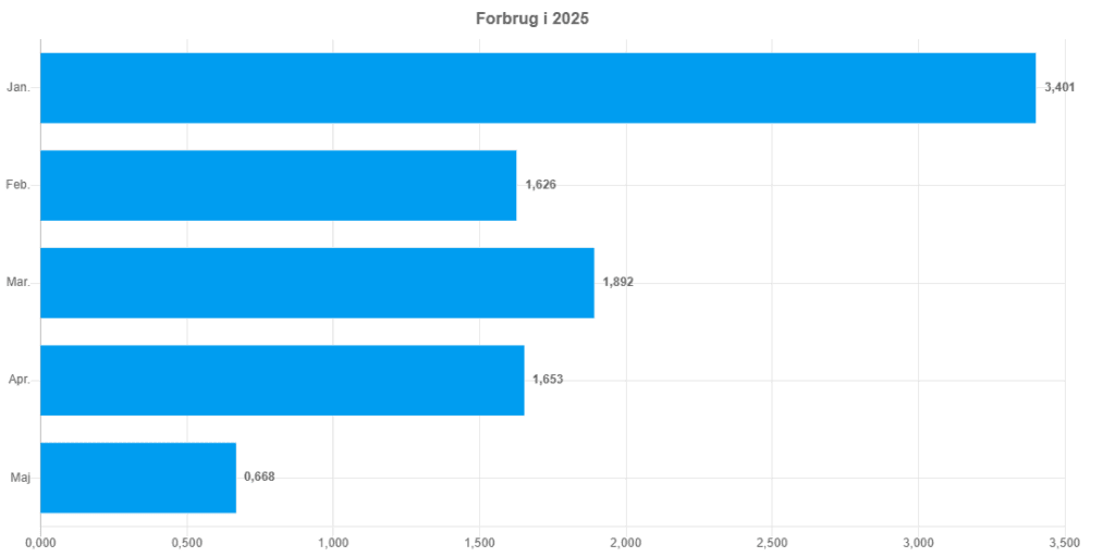 Bemærk at det ikke er muligt at se forbruget på minvandforsyning.dk længere tilbage end januar 2024.