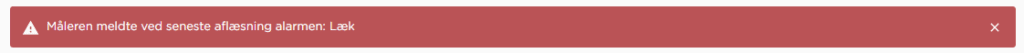 Når du er logget ind, kan du også se, om din måler har registreret en lækage eller et brud. Hvis måleren giver alarmen “lækage” betyder det, at